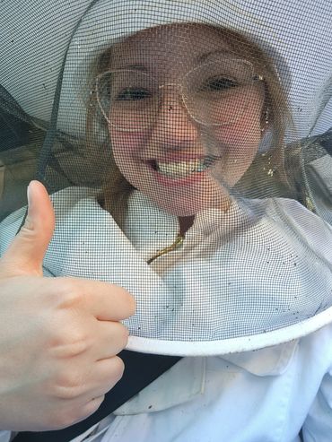 Kyla has been absolutely fascinated by bees since watching Idgie Threadgoode stick her arm into a wild beehive in Fried Green Tomatoes. Many years later, a coworker casually shared that she had bees and Kyla shared with her a list of endless questions. Kyla was enthusiastically invited to see her beehives, and was instantly captivated. The photo to the left was her very first experience with bees, and she is so grateful this sacred moment was captured.
